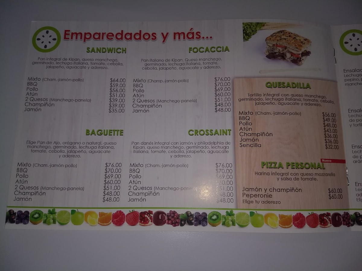 Kiwi comida rapida al natural Suc. Chapultepec Menu